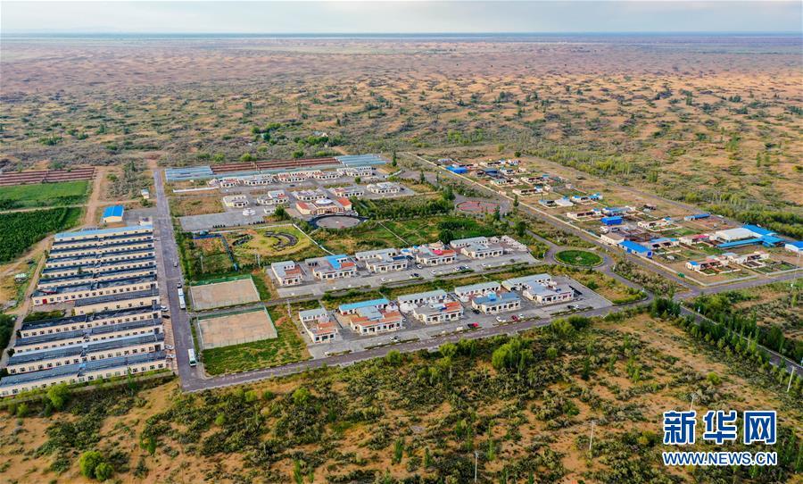 这是9月14日拍摄的位于内蒙古鄂尔多斯市杭锦旗境内的道图嘎查牧民新村(无人机照片)。新华社记者 连振 摄