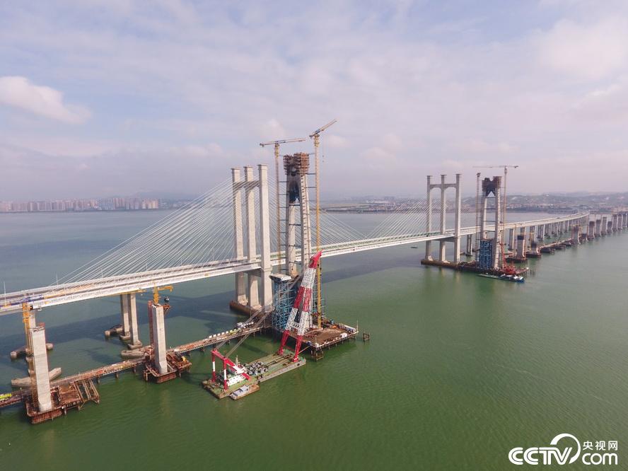 9月15日,随后最后一方混凝土浇筑完成,福厦高铁泉州湾跨海大桥南岸主塔成功封顶,标志着大桥整体迈入上构施工快车道。