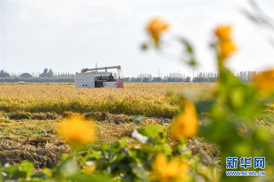 9月16日,在吉林省吉林市永吉县万昌镇张全家庭农场,农民驾驶农机收割水稻。 金秋九月,吉林省各水稻主产区陆续进入收获季,农民抓紧收割水稻,田间呈现喜人的秋收图景。 新华社记者 张楠 摄