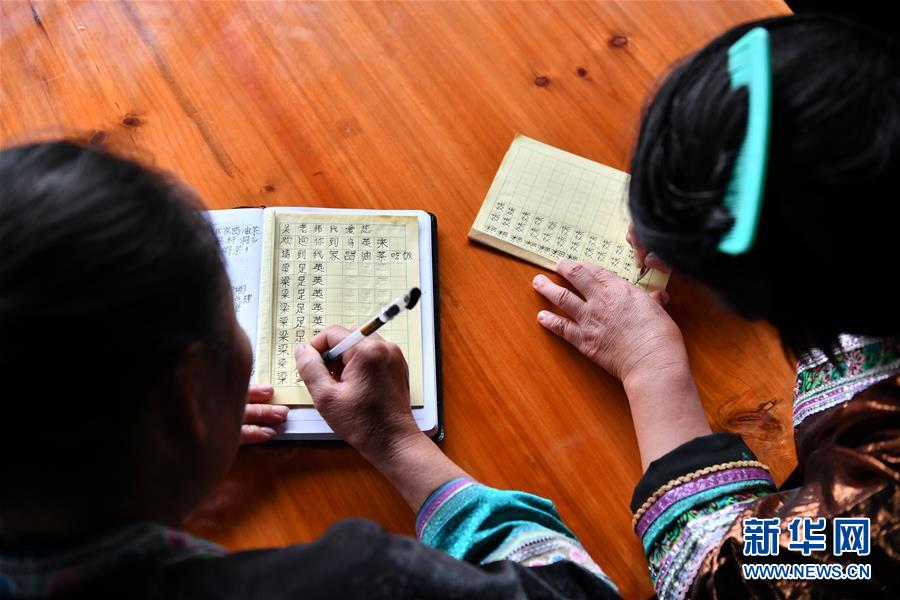 梁足英(左)和同学潘妹妹在家写作业(9月11日摄)。 新华社记者 李鑫 摄