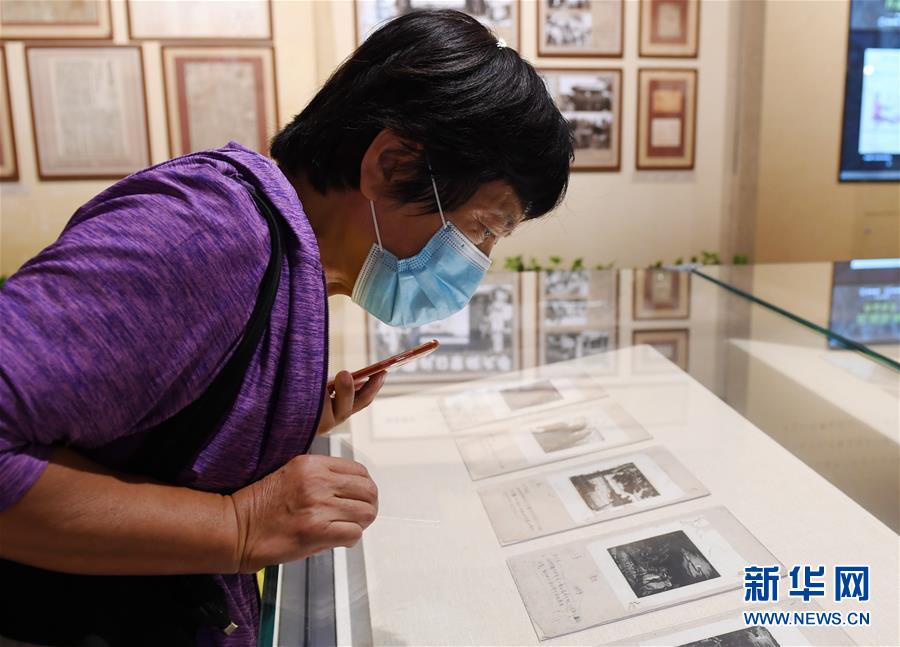 9月18日,观众在“抗日根据地的创建与发展”专题展览上观看展出图片。 当日,为纪念全民族抗战爆发83周年和中国人民抗日战争胜利75周年,由中国人民抗日战争纪念馆联合中国人民革命军事博物馆等全国10家革命类纪念(博物)馆共同主办的“抗日根据地的创建与发展”专题展览,在中国人民抗日战争纪念馆开幕。298张历史照片、约300件(套)文物向观众讲述了在中国共产党领导下,抗日根据地军民英勇抗击日本侵略者的伟大壮举。 新华社记者 张晨霖 摄
