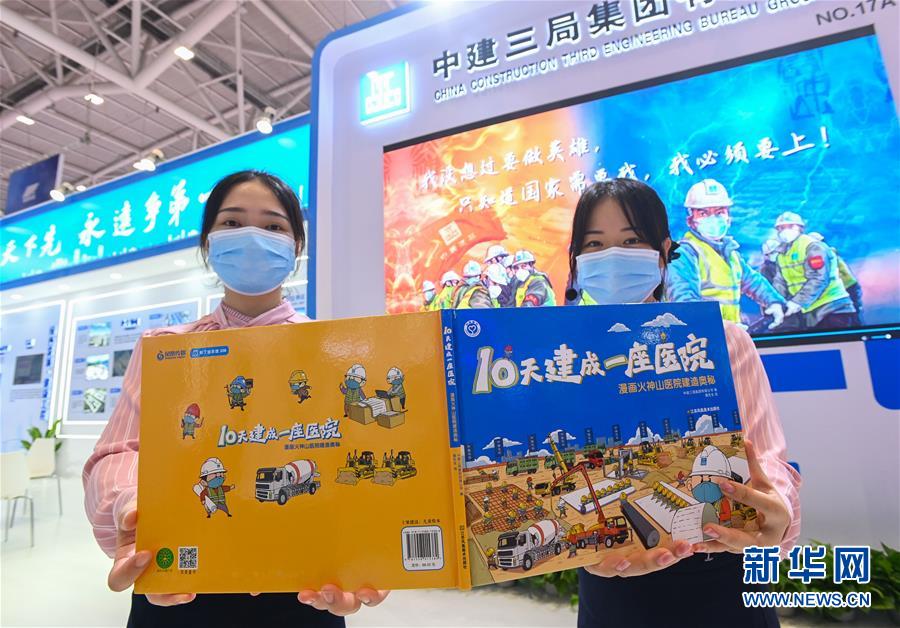9月19日,火神山、雷神山医院建设单位中建三局工作人员展示《10天建成一座医院》的火神山建设漫画书。 当日,第21届全国医院建设大会暨中国国际医院建设、装备及管理展览会在广东深圳举行。600多家中外参展商集中展示国内外医院建设市场发展的新技术、新设备、新方案、新应用。 新华社记者 刘大伟 摄