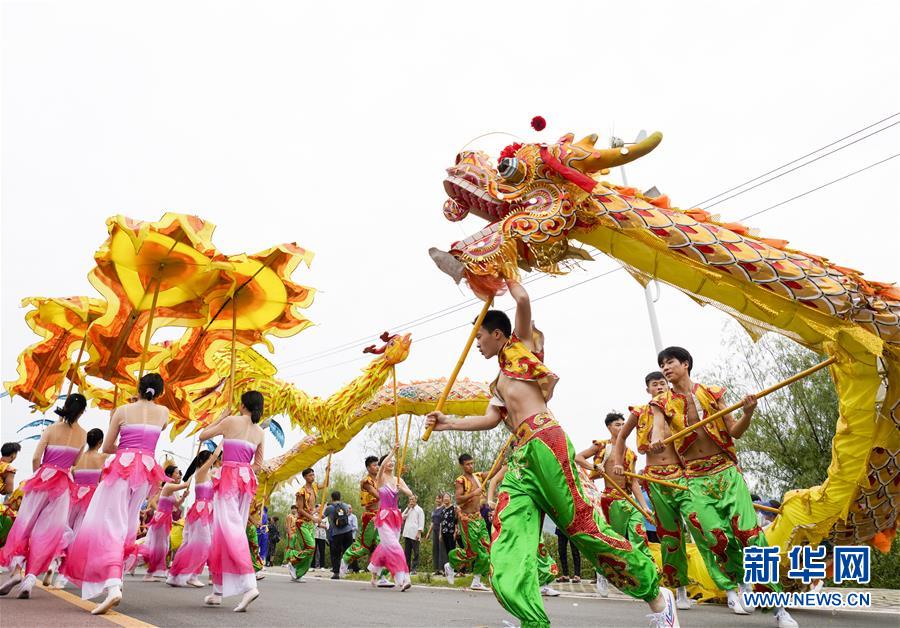 9月19日,铜梁区乡村振兴西郊示范片的西郊绿道上,当地村民在进行传统舞龙表演。 为迎接中国农民丰收节的到来,9月19日,在素有龙乡之称的重庆市铜梁区,当地乡村振兴西郊示范片各个村庄的姑娘、小伙们舞起了大儒龙、板凳龙、稻草龙、小彩龙,用当地传统习俗舞龙来共同庆祝丰收之喜,祝愿乡村振兴让农村越变越好。 新华社记者 刘潺 摄