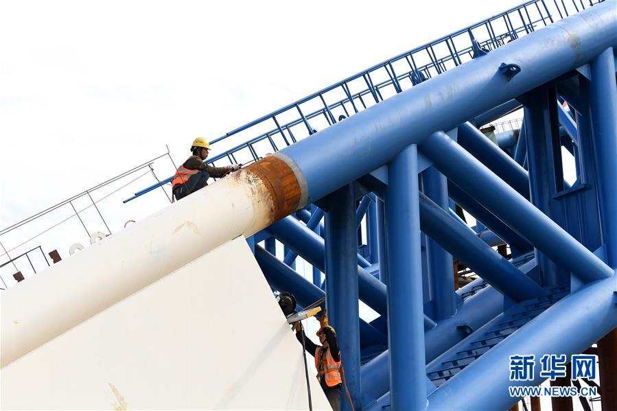 9月19日,中铁二十四局施工人员在引江济淮铭传路桥施工。新华社记者刘军喜摄