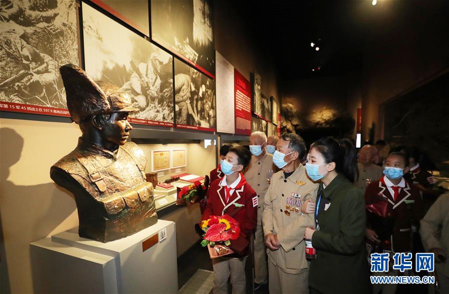 9月19日,志愿军老战士在少先队员和讲解员的陪同下参观抗美援朝纪念馆。新华社记者 杨青 摄