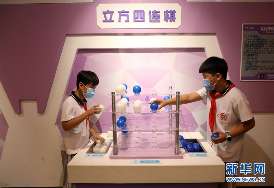 9月19日,小学生在山东省滨州市科技馆“趣味数学舱”体验“立方四连棋”。 以“决胜全面小康、践行科技为民”为主题的全国科普日活动19日在全国范围内同步启动,活动将持续到9月25日。 新华社发(陈彬 摄)