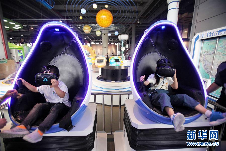 9月19日,小朋友在南京科技馆通过VR技术体验“海底两万里”。 以“决胜全面小康、践行科技为民”为主题的全国科普日活动19日在全国范围内同步启动,活动将持续到9月25日。 新华社发 (孙忠南 摄)