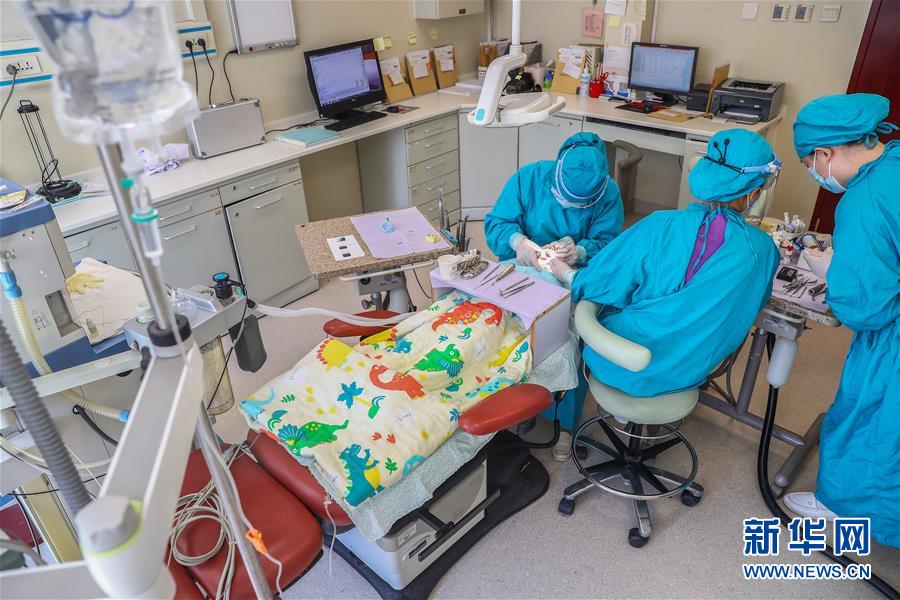 9月18日,儿童口腔医护人员在为一名小患者进行全麻下的牙病治疗。 新华社记者 张玉薇 摄
