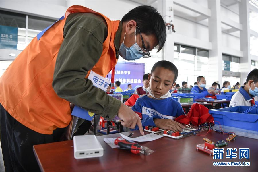 9月19日,在银川市举行的青少年电子制作锦标赛中,一名裁判(左)在对学生的操作进行打分。 当日,2020年全国科普日宁夏主场活动暨宁夏第五届青少年科学节在银川市启动。活动现场不仅有可以体验的科学装置,还设置了青少年创意编程暨智能设计大赛、青少年电子制作锦标赛等活动,让市民和学生近距离体验科学带来的欢乐。同时,60余家科技企业、科研机构和医疗卫生单位等现场参展,展示科技创新成果,开展科普宣传服务活动。 新华社记者 冯开华 摄