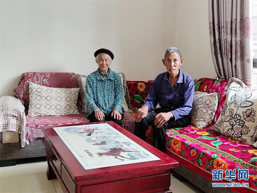 云南省昭通市鲁甸县龙头山镇的甘正芬老人(左)和老伴在家中(8月9日摄)。新华社记者 林碧锋 摄