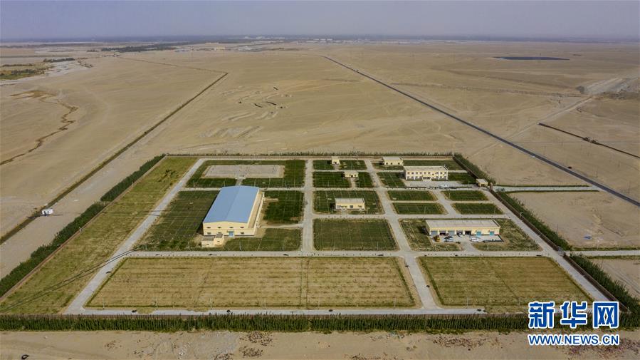 这是9月20日拍摄的新疆和田地区策勒县供水总厂外景(无人机照片)。 新疆策勒县南依昆仑山脉,北靠塔克拉玛干沙漠。长期以来,当地面临着水资源短缺和时空分布不均等难题。在脱贫攻坚进程中,策勒县持续推进改水惠民工程,保障城乡居民饮水安全。 策勒县供水总厂工程总投入3亿多元,于2019年9月正式通水,覆盖策勒县城区、四个乡镇及易地搬迁区的生活用水,日供水能力约3.5万立方米。 新华社记者 胡虎虎 摄