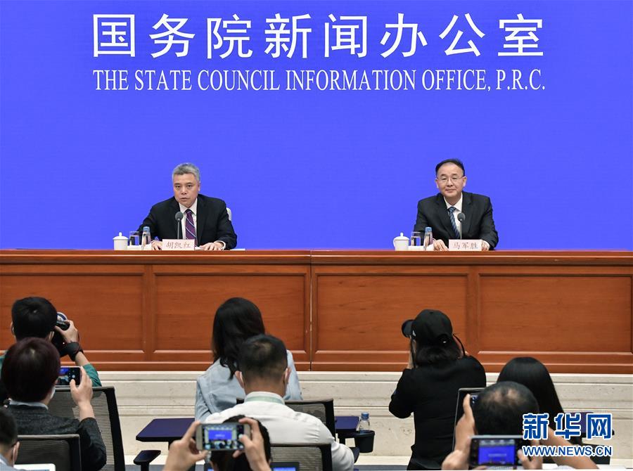 9月21日,国家邮政局局长马军胜(右)在发布会上介绍相关情况。 当日,国务院新闻办公室在北京举行新闻发布会,国家邮政局局长马军胜在发布会上介绍了邮政快递业助力脱贫攻坚有关情况,并答记者问。 新华社记者 李贺 摄