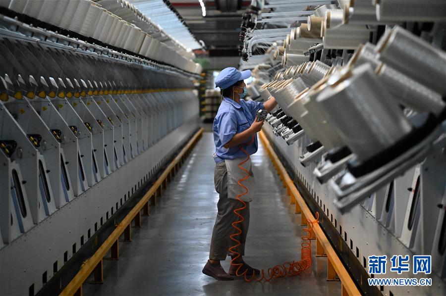 在平顶山神马帘子布发展有限公司捻织车间,工人正在忙碌(8月4日摄)。 新华社记者 张浩然 摄