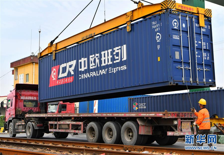 中欧班列的标准集装箱在厦门海沧站进行吊运(4月25日摄)。 1980年10月,国务院批准设立厦门经济特区,这片土地翻开了开放发展新篇章。如今,40载岁月峥嵘,乘着改革开放的春风,曾经硝烟弥漫的海防前线,正向着一座高素质高颜值现代化国际化城市迈进。 新华社记者 魏培全 摄