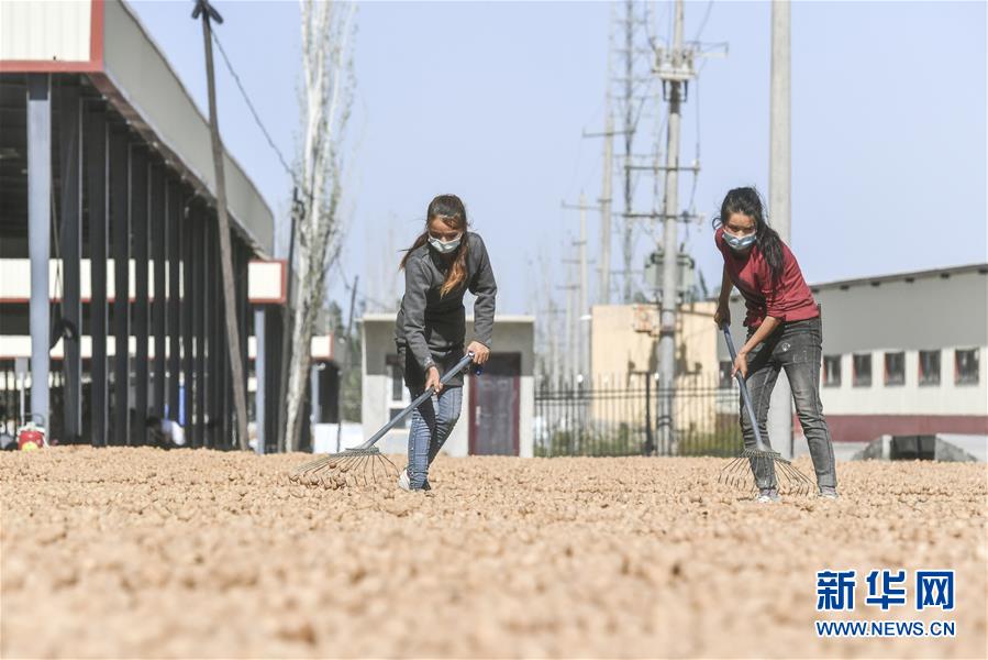 9月20日,在叶城县西域果蔬电商供应链有限公司院内,两名工作人员在翻晒核桃。 金秋时节,新疆喀什地区叶城县的核桃进入采收季。据叶城县农业农村局介绍,截至2020年该县核桃种植总面积达58万亩,预计产量达13万吨。 叶城县是新疆未摘帽国家级贫困县之一。近年来,在当地政府的大力推动下,核桃产业已成为当地居民脱贫增收的重要渠道。 新华社记者 马锴 摄