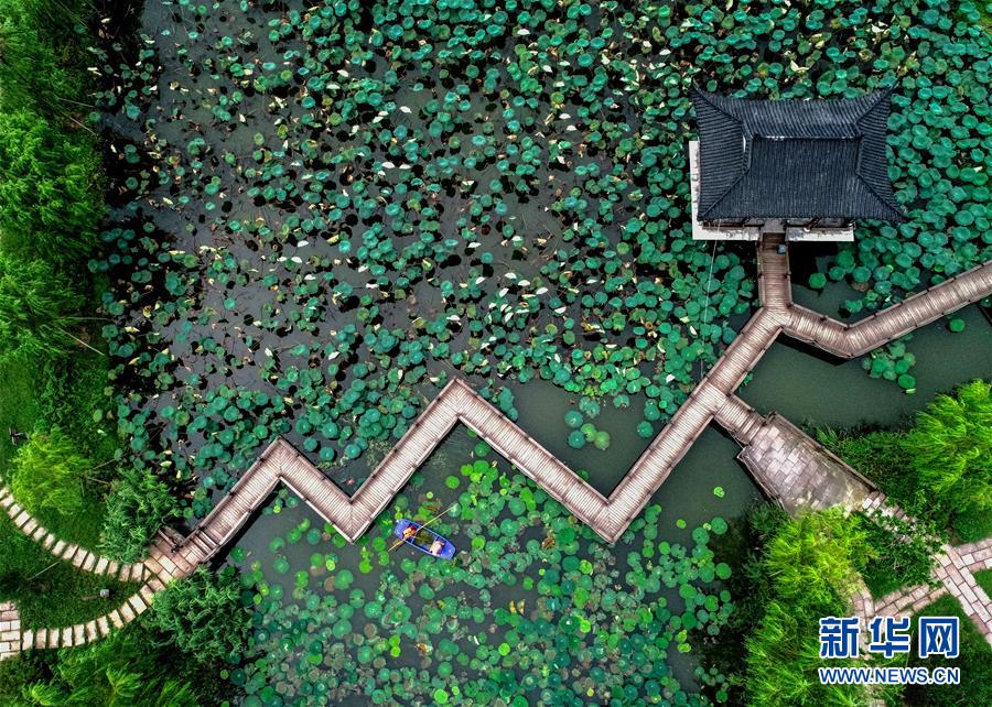 9月21日,长兴县吕山乡的基层党员志愿者在胥仓村池塘中打捞浮萍及水草(无人机照片)。 今年以来,浙江省湖州市长兴县吕山乡积极开展乡村河道保洁全覆盖活动,通过每月对辖区内河道进行巡查,定期安排志愿者进行护河活动,加大水环境治理力度,营造水清岸美的乡村环境。 新华社记者 徐昱 摄