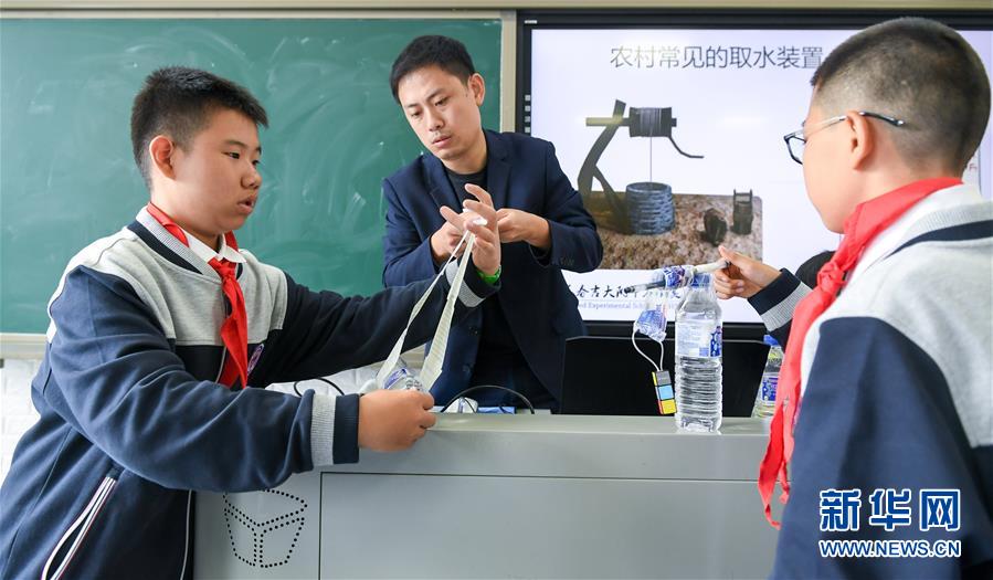 9月21日,长春吉大附中力旺实验中学七年级学生在STEAM课堂上展示自己做好的物理实验模型。 融合科学、技术、工程、艺术和数学的STEAM课程,是长春吉大附中力旺实验中学从2016年开始研发的一门课程。在课堂上,老师会通过生动有趣的实验为学生讲授物理、生物、信息技术等学科的知识,培养孩子们的科学素质,让同学们产生对科技的好奇心。 新华社发(颜麟蕴 摄)