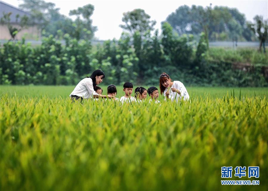 9月21日,孩子们在老师们的带领下来到稻田里参加“田园看穗”活动,感受丰收的喜悦。 当日,浙江省湖州市长兴县林城镇中心幼儿园开展“秋分晒秋迎丰收”活动。孩子们在老师的带领下通过“认一认农作物”“田园看穗”“丰收搬运赛”等趣味活动学习传统节气知识,感受乡村丰收的喜悦。 新华社记者 徐昱 摄