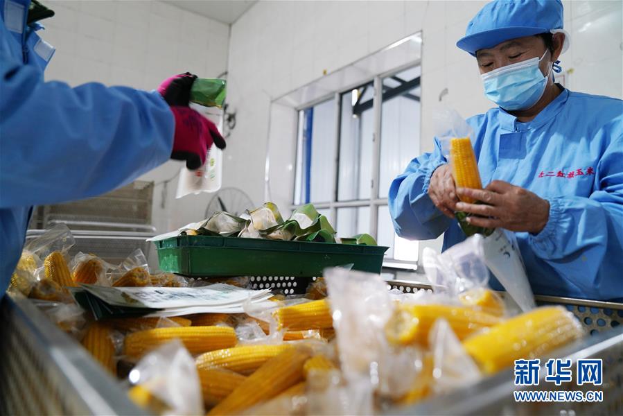 9月21日,在五常市巾帼蔬菜种植农民专业合作社的甜粘玉米扶贫产业项目生产车间,工人在包装玉米。 近年来,黑龙江省五常市兴隆乡投入扶贫专项资金,发展甜粘玉米扶贫产业项目,带动全乡160余户建档立卡户脱贫增收。 新华社记者王建威摄