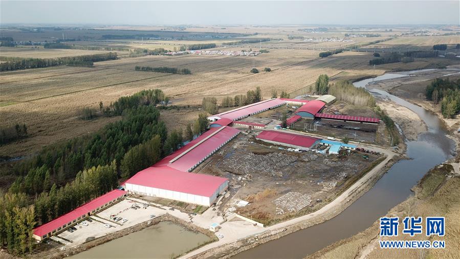 这是9月23日拍摄的扶贫龙头企业宾县鑫华泰肉牛饲养有限公司的养殖基地(无人机照片)。 近年来,黑龙江省哈尔滨市宾县依托扶贫龙头企业,发展肉牛扶贫产业,带动当地200余户建档立卡户脱贫增收。 新华社记者 王建威 摄