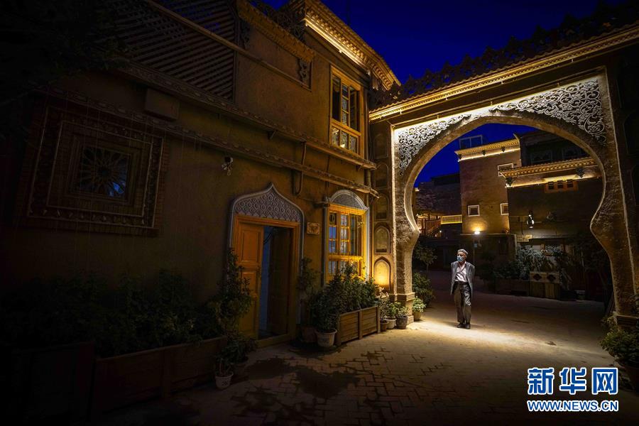 9月22日,喀什古城居民行走在巴格其巷。新华社记者 赵戈 摄