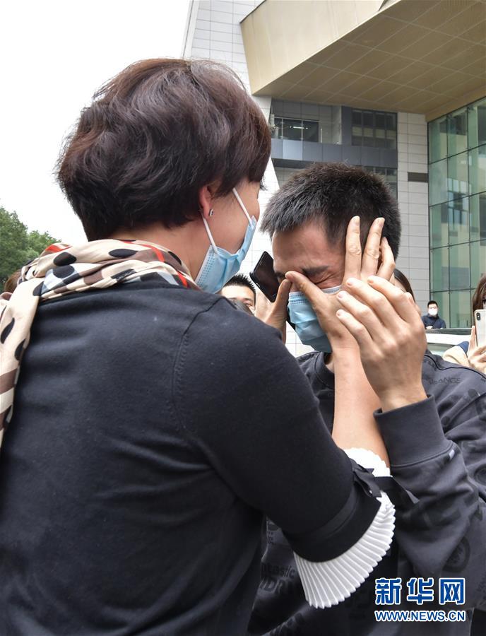 9月23日,北京援鄂医护人员代表回访在武汉工作期间的居住地时,巧遇陕西援鄂医疗队队员侯永生(右),双方难掩激动。 当日,10余名北京援鄂医护人员代表受邀回访武汉,在武汉协和医院西院和医疗队曾经的居住地,昔日的医疗队队员与武汉的抗疫“战友”重聚。 新华社记者 李贺 摄