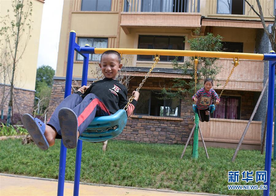 孩子们在南坪社区内的健身场玩耍(8月11日摄)。 新华社记者 李贺 摄