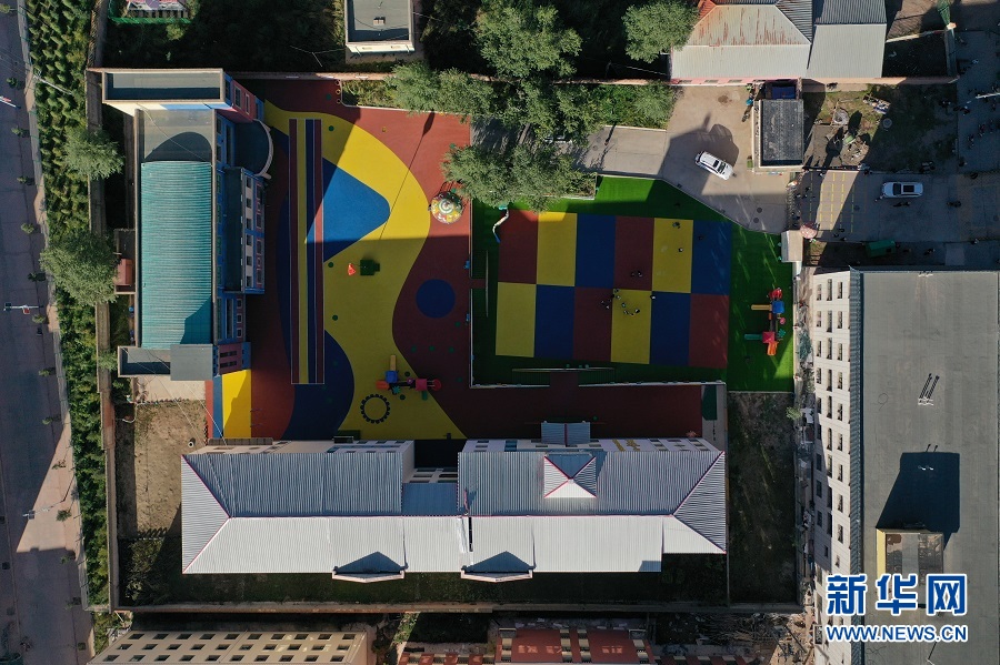 俯瞰拉加镇中心幼儿园。(新华网潘彬彬 摄)