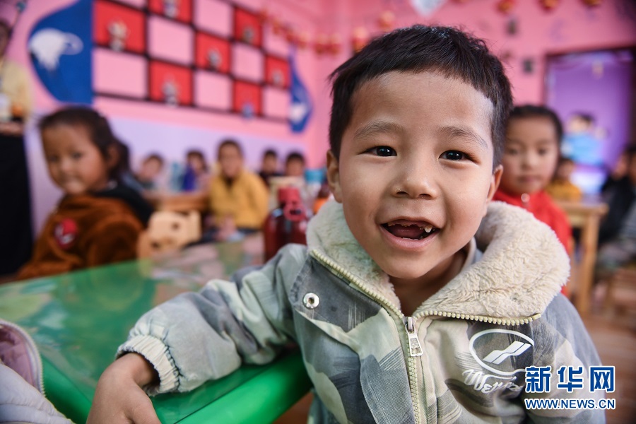 青海省果洛藏族自治州玛沁县拉加镇中心幼儿园正在上课的孩子们。(新华网潘彬彬 摄)