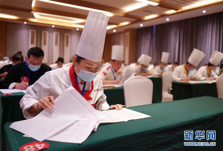 9月25日,参赛选手参加药膳技能大赛笔试。 当日,2020年首届“扁鹊杯”药膳技能大赛在河北省邢台市内丘县举行,大赛分团体组和个人组两个组别,吸引了来自全国各地10个代表队的43名选手参赛。 新华社记者 朱旭东 摄