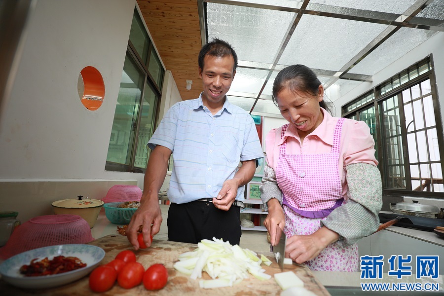 图为唐春华和妻子正在厨房忙碌,准备游客的订餐。新华网 王凯丰 摄