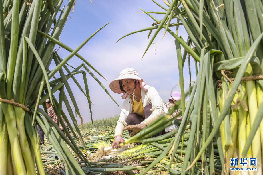 山西省运城市稷山县的大葱丰收。新华网 发 (史港泽 摄)