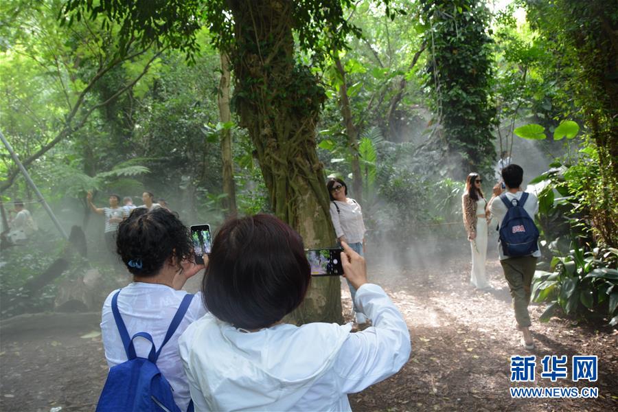 9月26日,游客在厦门市园林植物园内的雨林植物区拍照留念。新华社记者 颜之宏 摄