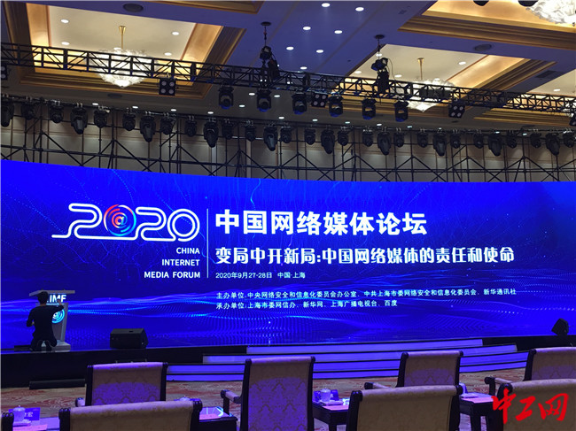 9月27日,由中央网信办、上海市委网信委、新华通讯社联合主办的“2020中国网络媒体论坛”在上海开幕。来自政府、学界、业界的嘉宾围绕“变局中开新局:中国网络媒体的责任与使命”这一核心主题展开深入探讨和交流。图为中国网络媒体论坛现场。中工网 赵巧萍 摄
