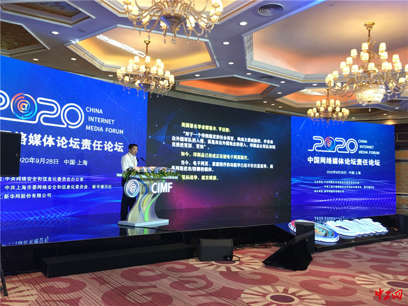 9月28日,2020中国网络媒体论坛责任论坛在上海举行,各界嘉宾围绕“大变局时代网络传播的责任与行动”这一主题开展探讨和交流。图为论坛现场。中工网 李学平 摄