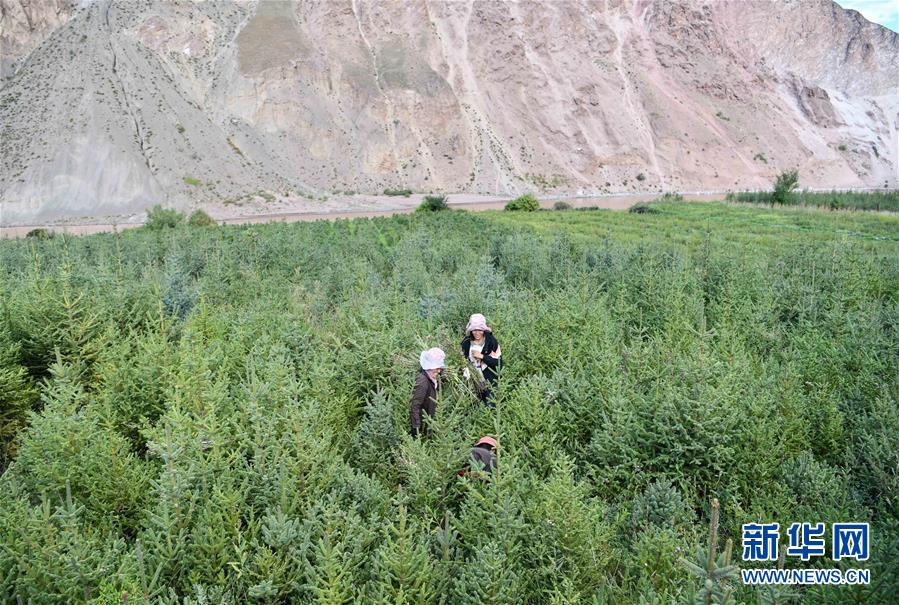 西藏昌都察雅县卡贡乡卡贡村村民在苗圃产业基地进行除草作业(9月28日摄)。 西藏昌都察雅县卡贡乡卡贡村苗圃产业基地占地2000亩,主要以苗圃种植和生态林建设为主。苗圃种植基地通过土地流转费及务工报酬,为当地70户100余名群众脱贫致富提供了坚强的保障。 新华社记者 晋美多吉 摄