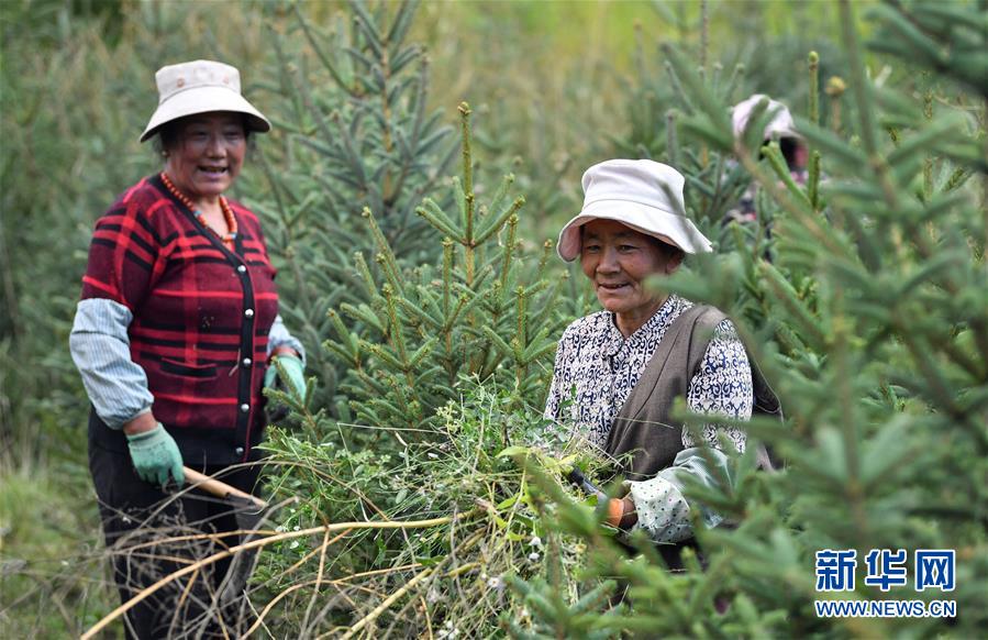 西藏昌都察雅县卡贡乡卡贡村村民在苗圃产业基地进行除草作业(9月28日摄)。 西藏昌都察雅县卡贡乡卡贡村苗圃产业基地占地2000亩,主要以苗圃种植和生态林建设为主。苗圃种植基地通过土地流转费及务工报酬,为当地70户100余名群众脱贫致富提供了坚强的保障。 新华社记者 晋美多吉 摄