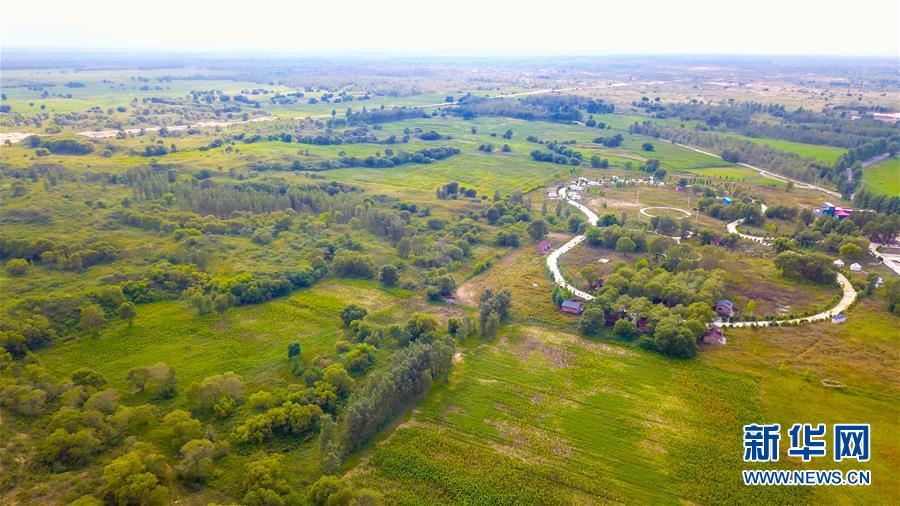 这是内蒙古通辽市科尔沁左翼后旗阿古拉嘎查周边的科尔沁沙地的治理情况(9月14日摄,无人机照片)。 新华社记者 彭源 摄
