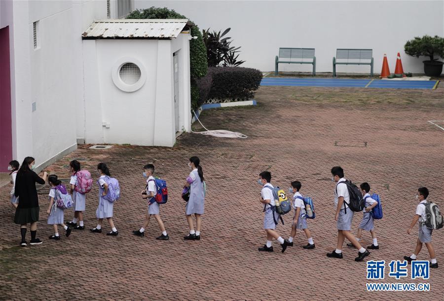 9月29日,在香港马头涌官立小学(红磡湾),小学生有序排队进入校园。新华社记者 王申 摄