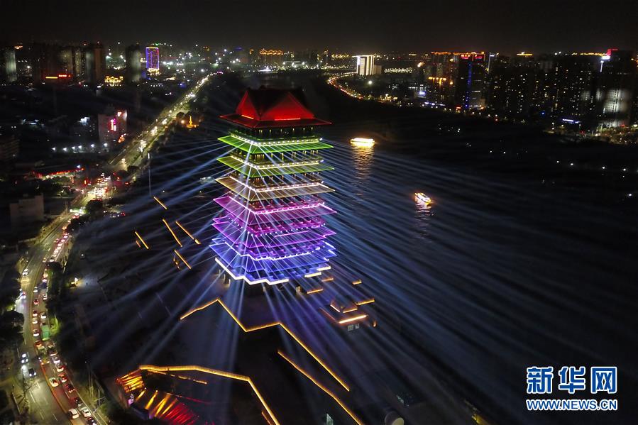 这是9月29日拍摄的兰州黄河楼夜景(无人机照片)。 当日,以“点亮黄河楼 魅力兰州夜”为主题的兰州黄河楼点亮仪式在兰州市七里河区黄河楼景区举行。据介绍,兰州黄河楼的建成对传承、研习历史,弘扬黄河文化具有积极影响和现实意义。 新华社记者 范培珅 摄