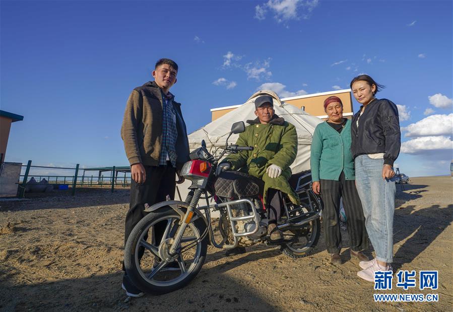 在新疆吉木乃县万驼园内,牧民米拉木别克·阿依提克(左二)与家人在房前合影(6月21日摄)。因在万驼园打工,曾因病致贫的建档立卡贫困户如今家庭月收入超万元。 近年来,随着一系列就业惠民工程深入实施,新疆越来越多的农村富余劳动力接受技能培训后实现有序进城就业。特别是第二次中央新疆工作座谈会以来,新增就业人数近200万。如今,有技能、有事干、有钱挣成为南疆一些深度贫困地区各族群众的生活“底色”。生活条件好起来,“钱袋子”鼓起来,对美好生活的希望更加迫切,当地群众劳动创业愿望越来越强烈,奋斗精神越来越足。 新华社记者 赵戈 摄