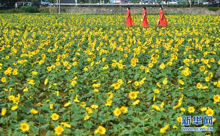9月30日在丰收节活动现场拍摄的向日葵花海。 当日,浙江省义乌市佛堂镇龙溪村在万亩稻田中举办“庆丰收 迎国庆”丰收节活动。本次活动围绕“丰收有乐事”“丰收有看点”“丰收有味道”“丰收有逛头”四个板块开展。活动包括田园音乐会、农产品展销、美丽乡村广场舞大赛、村歌大赛、农田亲子趣味运动会、稻草人展示、原乡美食宴等内容。据介绍,丰收节已经成为当地展示乡村振兴成果、弘扬优秀农耕文化、拉动美丽乡村旅游和假期消费的重要节日。 新华社记者 徐昱 摄
