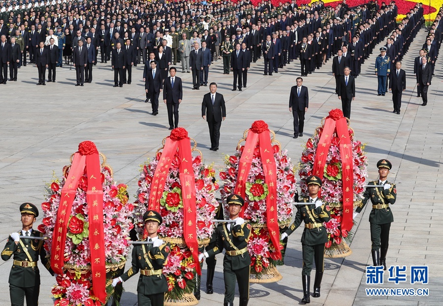 9月30日上午,党和国家领导人习近平、李克强、栗战书、汪洋、王沪宁、赵乐际、韩正、王岐山等来到北京天安门广场,出席烈士纪念日向人民英雄敬献花篮仪式。 新华社记者 王晔 摄