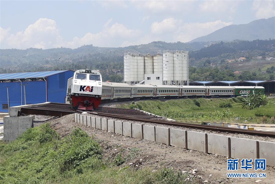 9月30日,在印尼雅万高铁10号隧道上方,一列火车驶过印尼既有铁路线。 印度尼西亚雅万高铁建设30日实现两项重要进展,雅万高铁10号隧道安全穿越印尼既有铁路线,为后续的架梁、铺轨等奠定了坚实基础。 新华社记者 杜宇 摄