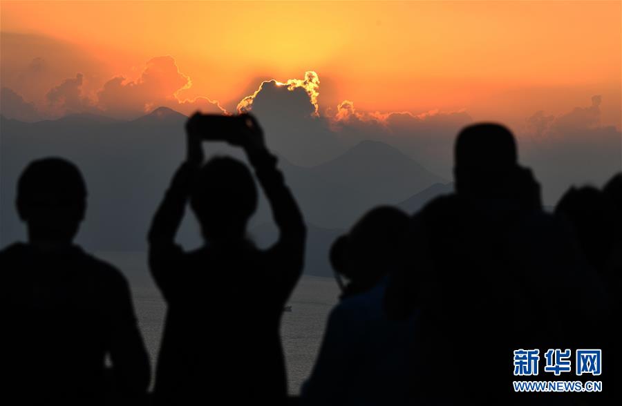 10月1日,游客在霞浦县三沙镇花竹村观景平台上观赏海上日出。 金秋时节,福建省宁德市霞浦县迎来了最佳观赏拍摄季,吸引众多摄影爱好者和游客前来观赏。 新华社记者 魏培全 摄