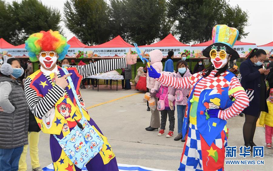 这是10月1日在新疆阿勒泰地区布尔津县俄罗斯步行街拍摄的美食节活动。 当日是国庆节和中秋节,全国各地的人们用各种方式欢度节日。 新华社记者 沙达提 摄