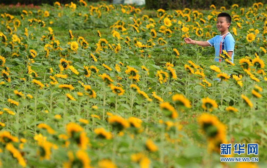 10月1日,游客在安徽省肥西县上派镇祥源花世界游玩。 当日是国庆节和中秋节,全国各地的人们用各种方式欢度节日。 新华社记者 刘军喜 摄