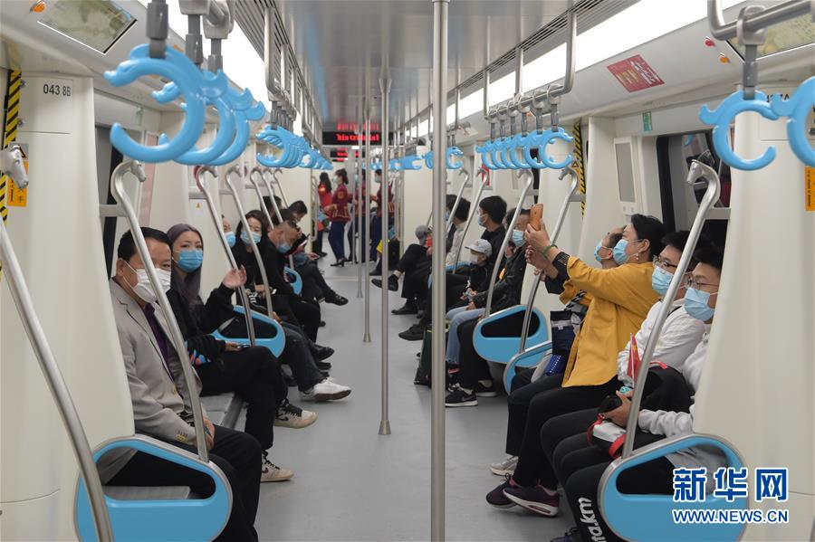 10月1日,市民在乘坐呼和浩特地铁2号线列车。 当日,内蒙古自治区呼和浩特市地铁2号线开通初期运营。呼和浩特地铁2号线全长27.3公里,共设车站24座,可与地铁1号线实现换乘,方便市民出行。 新华社记者 朱文哲 摄