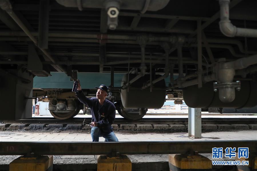 假日里的劳动者——给列车体检的“火车医生”