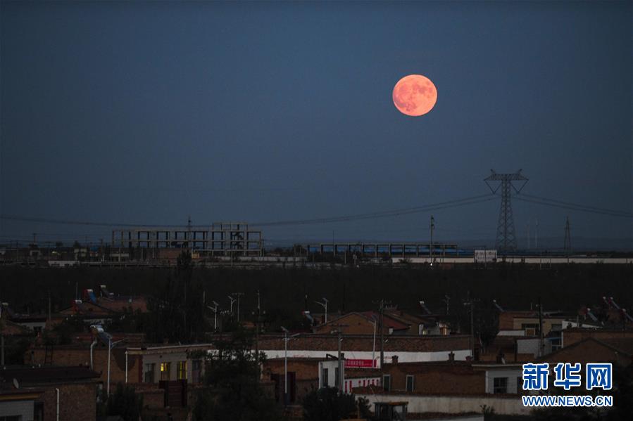 这是10月1日在宁夏吴忠市盐池县拍摄的圆月。 当日是农历八月十五,传统的中秋节与国庆节相遇,共迎圆月。 新华社记者 冯开华 摄